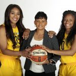 - (From Left to Right): Victoria Vivians, Head Coach Pokey Chatman, Kelsey Mitchell