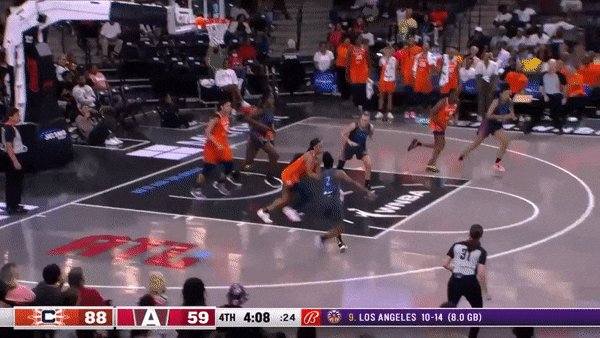 The Sun’s pace has substantially increased this year, in large part due to Alyssa Thomas shouldering so much of the ball-handling but also due to Carrington’s freneticism on the defensive end. I’m really excited for her growth, as I imagine the Sun are as well, and the leap she’s made this year has been integral in kick-starting their offensive output when they struggle with stagnancy.