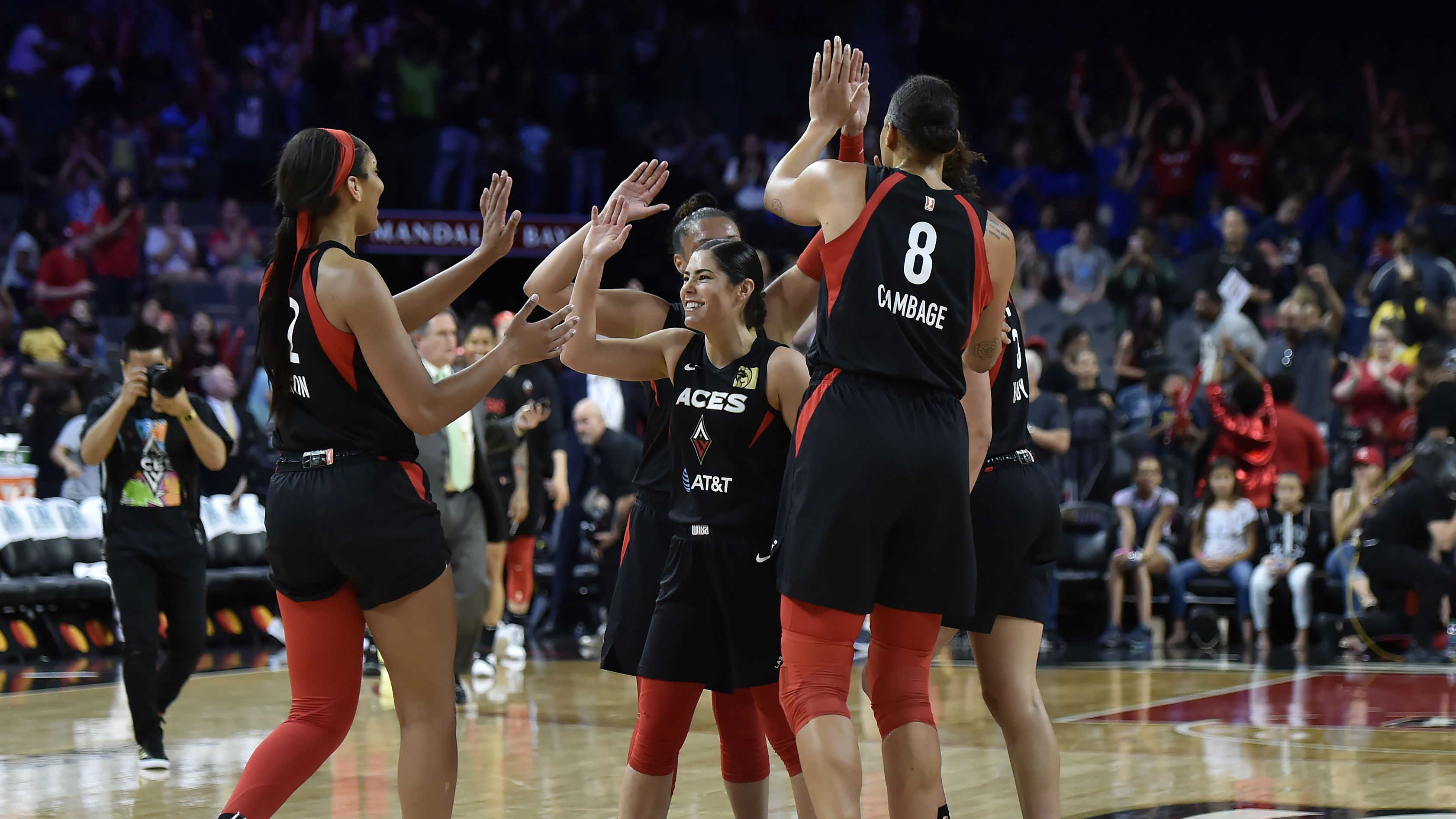 The Aces closed the first half with a 25-4 run over the last 5:45 for a 61-39 lead. They didn’t slow down much in the second half, finishing the game making 9 of 18 3-pointers and shooting 56% overall, with 32 assists on 41 baskets.