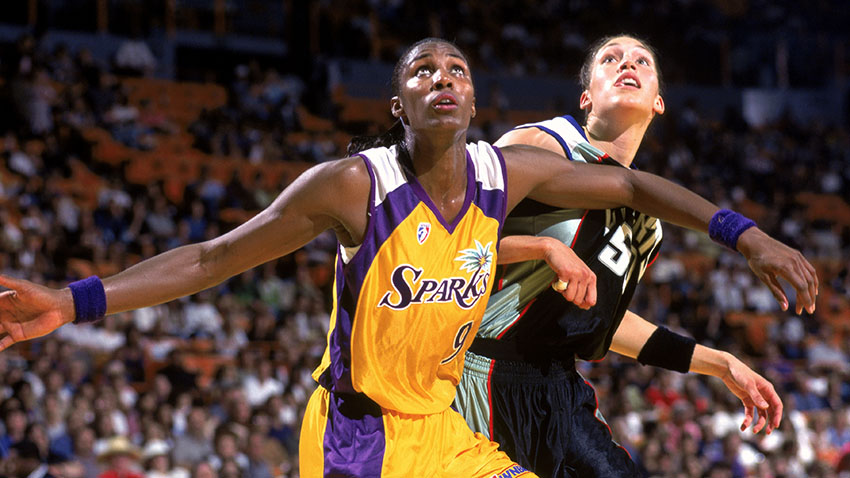 - June 24: The Los Angeles Sparks react after their team goes on a run during their game against the New York Liberty (Andrew D. Bernstein/NBAE/Getty Images)