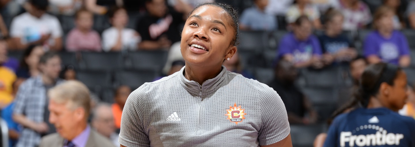 - Rookie Jonquel Jones is all smiles after the Sun defeated the Seattle Storm early in June.