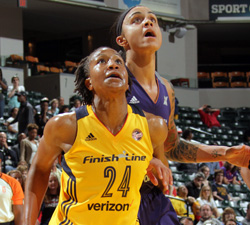 Erlana Larkins had her usual double-double and climbed over the 1,000 career points marker in the process. The Fever bigs held their own against the WNBA’s premiere interior force, holding Brittney Griner to a quiet 14 points.
