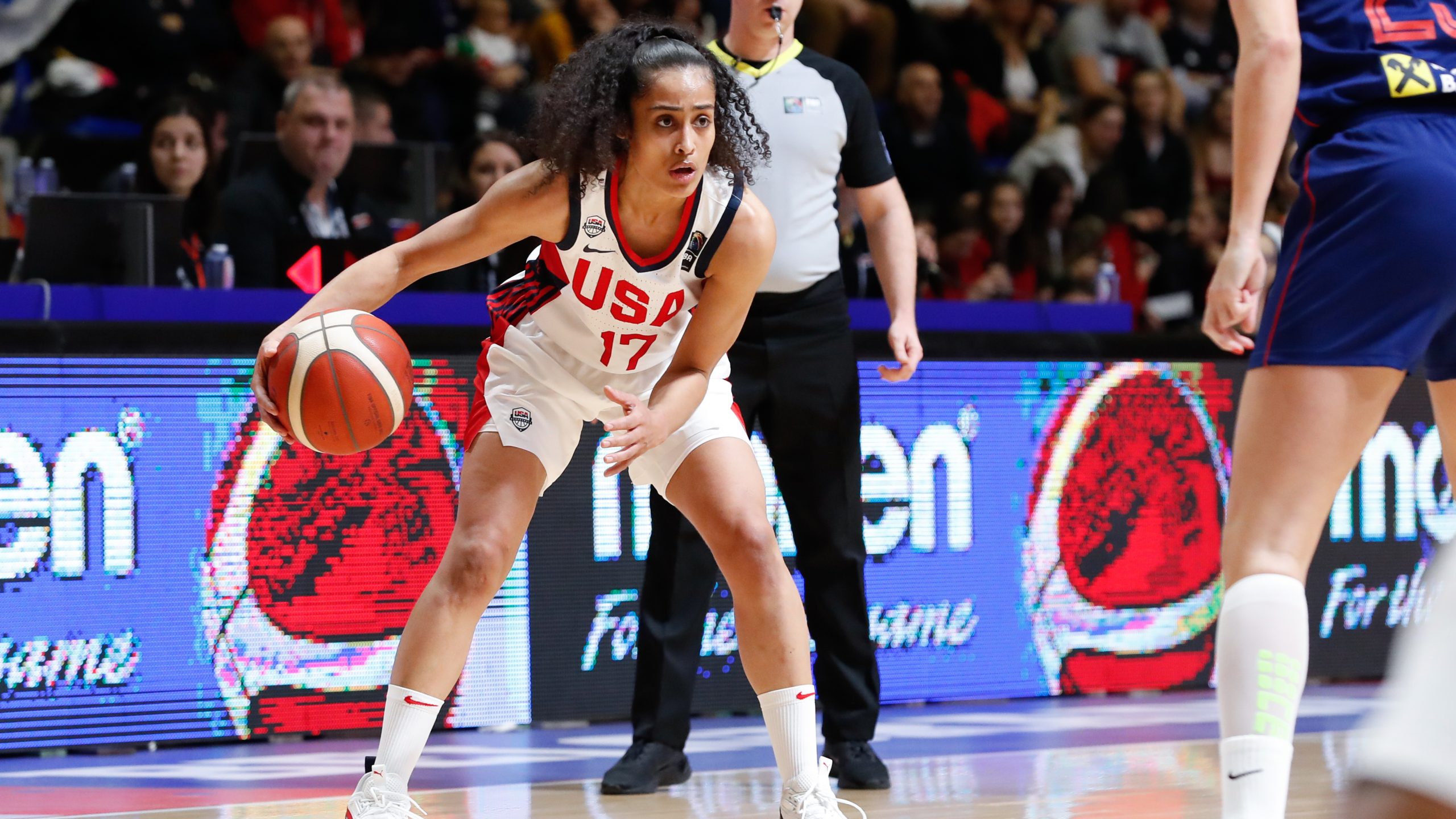 - Layshia Clarendon drives the offense for USA against China.