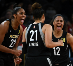 Las Vegas took a 56-36 lead at halftime after Dearica Hamby made two free throws with 2.8 seconds left. Hamby had 13 points, Jackie Young added 12 and Wilson scored 10 points in the first half as the Aces shot 57.9% from the field.