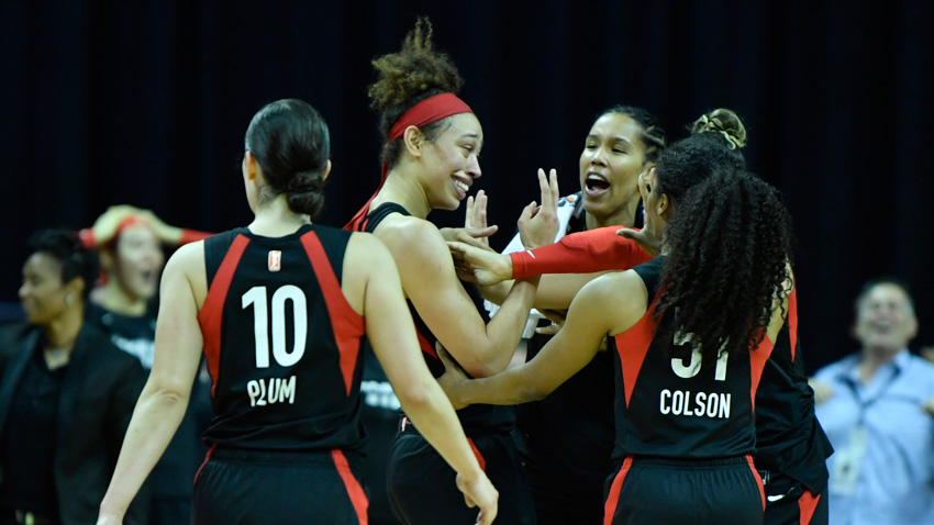 On the ensuing possession, Vandersloot poked the ball off the leg of A’ja Wilson, who lost it out of bounds.