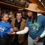 - Augustus interacts with a young fan.