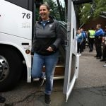 - Whalen stepping off the bus ready for the celebration.