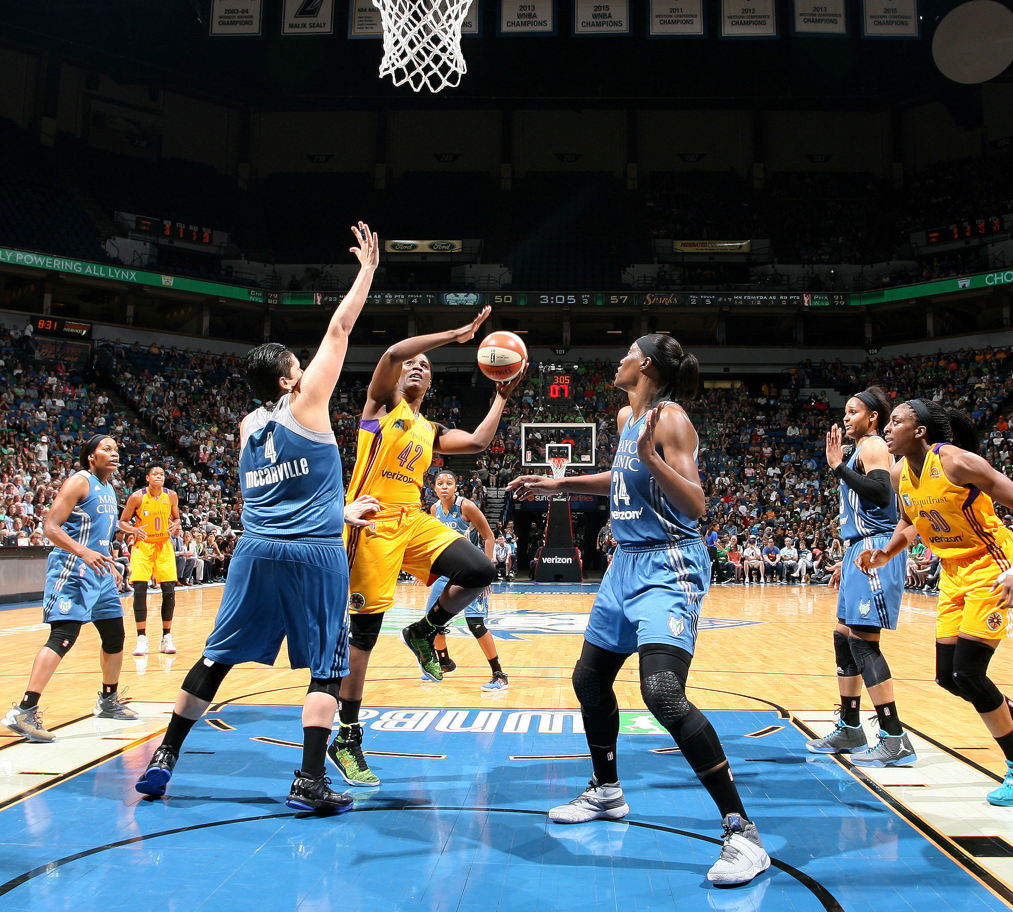 The top-seeded Mercury would defeat the Lynx in three games to advance to the Finals, where they swept the 15-19 Chicago Sky in three games.