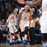 - Seimone Augusts reacts to a big play in the second half of Game 2.