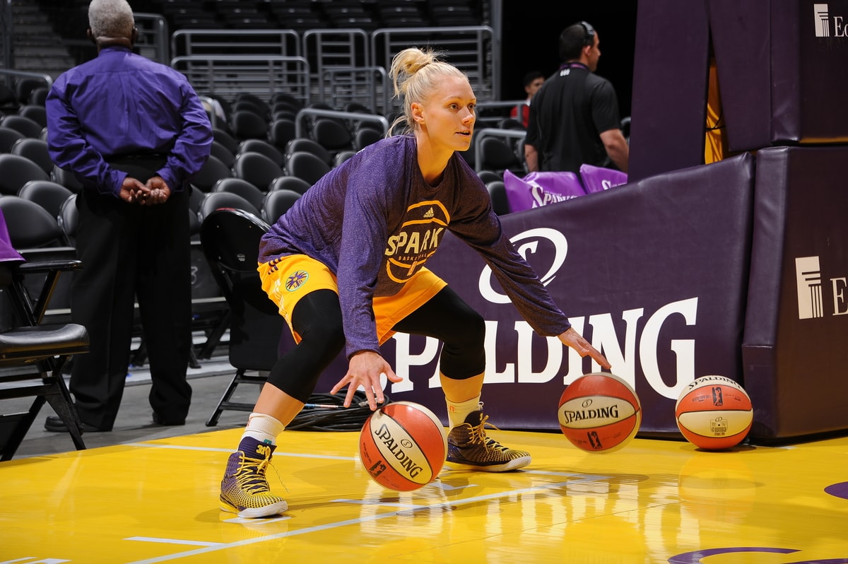 - Sparks guard Erin Phillips warms up before a June 16 game against the Lynx.