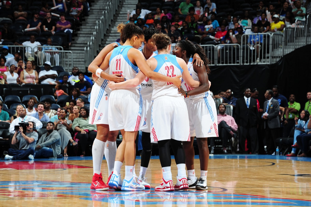 - A group of Dream players huddle during a game against New York.