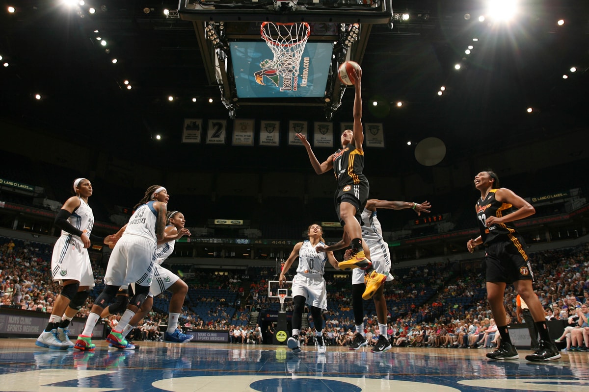 - Rookie Brianna Kiesel blows past Lynx defenders en route to a layup.