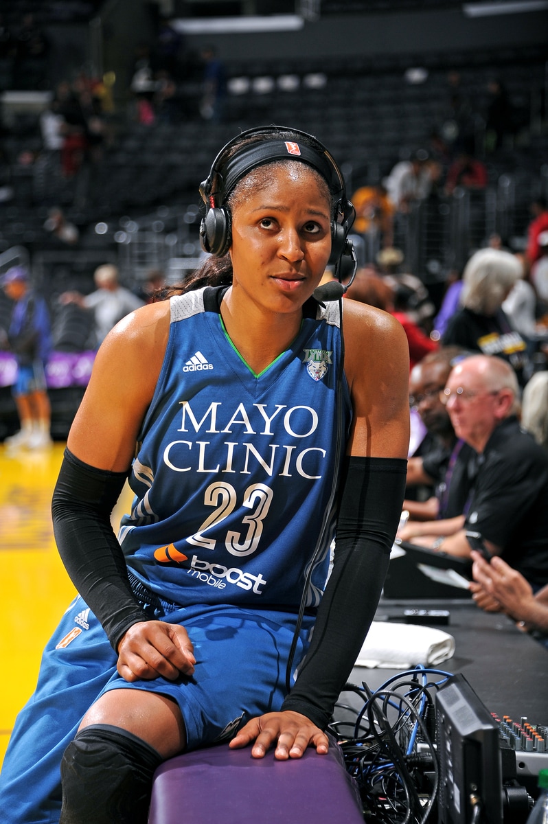 - Reigning MVP Maya Moore speaks with the media after a June 16 victory.