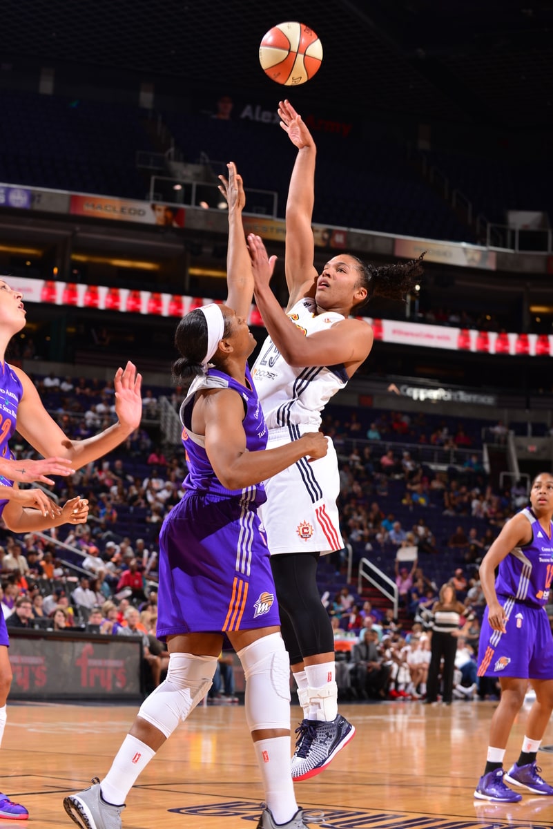 - Sun forward Alyssa Thomas puts up the sky hook.
