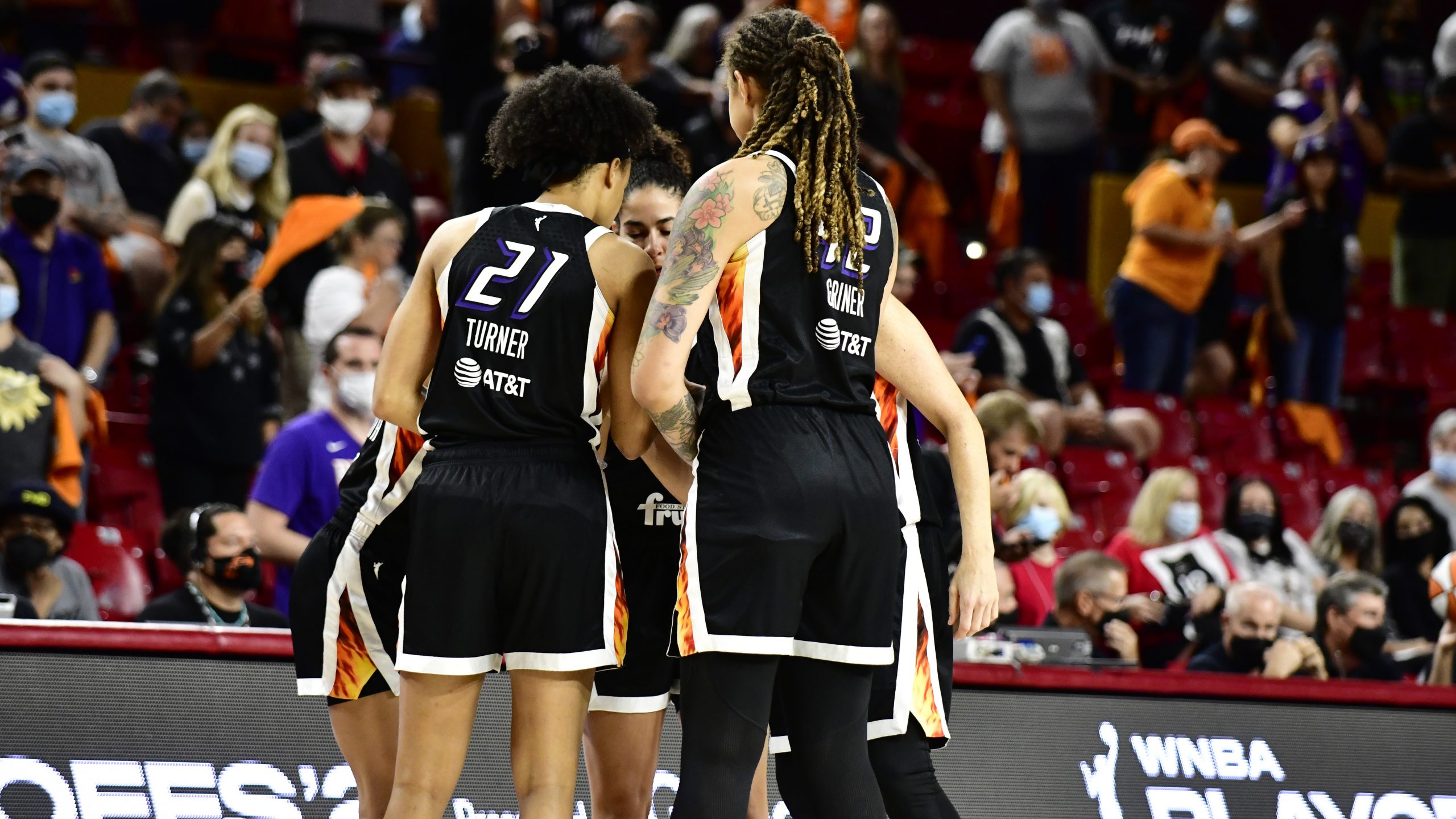 Phoenix set a WNBA playoff record with 68 first-half points on 76.5% shooting. Brittney Griner scored 25 points, 16 of them in the first quarter, to go with seven rebounds and five assists. She was 7 of 8 from the field in the first quarter and finished 9 of 12.