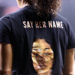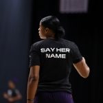 - Kia Vaughn’s “Say Her Name” shirt pictured in warmups.