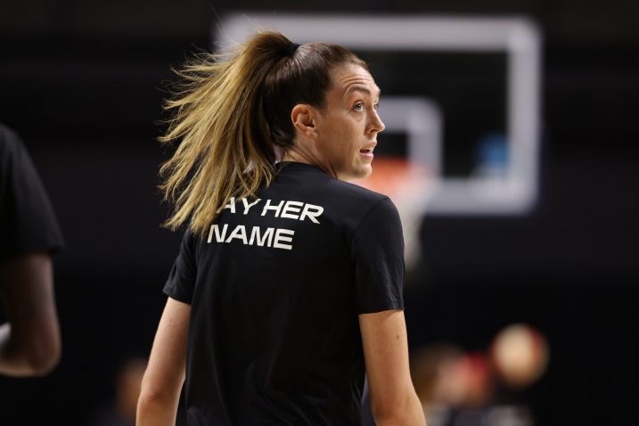 - Natisha Hiedeman, Alyssa Thomas, and Brionna Jones jerseys displaying Breonna Taylor’s name.