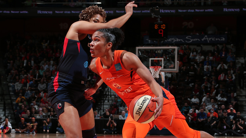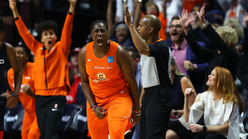 The Sun (6-1) trailed by 13 at the half and took their first lead since early in the game on Thomas’ layup midway through the fourth quarter. Thomas had left the game a few minutes earlier when she went down hard after committing a foul and grabbed her knee. She was on the sideline for a few minutes being looked at by the Sun’s training staff before returning.