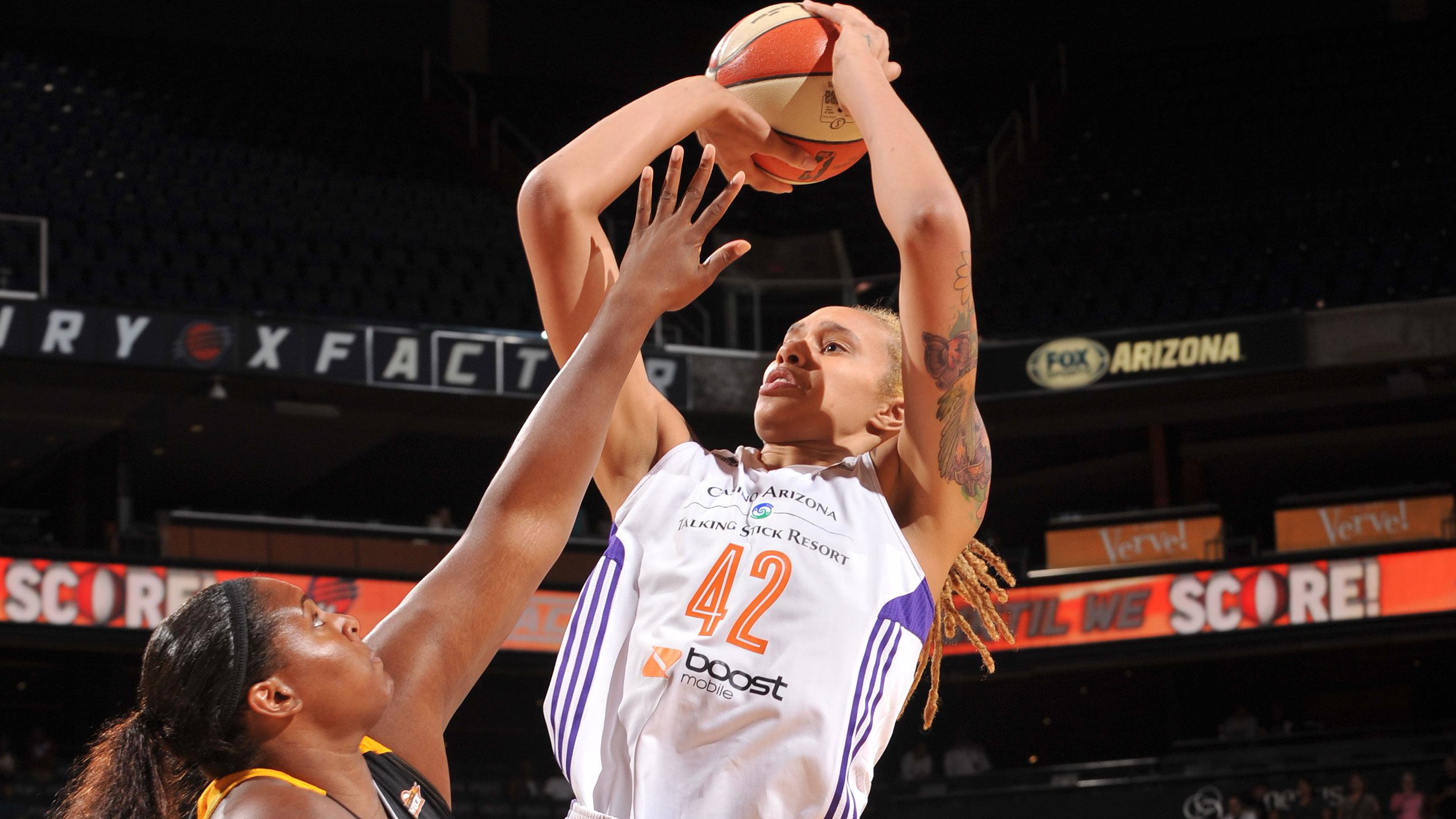 Brittney Griner notched 13 points, 10 rebounds and seven blocks as the Mercury beat the Shock on Thursday.