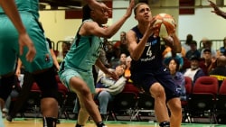 France scored the first five points of the final period to lead 72-71, but the USA responded with seven straight points to retake a 78-72 lead at 7:12 on the second-straight jumper from Wilson. After scores from both teams, the USA added a 3 from Sue Bird (Seattle Storm/Connecticut/Syosset, N.Y.) and did not let France any closer than six points from there. Charles scored eight of her points in the fourth, including two 3-pointers.
