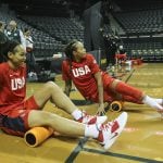 - Team USA warm up ahead of their college tour matchup against the Oregon Ducks. (Eric Evans/NBA/Getty Images)