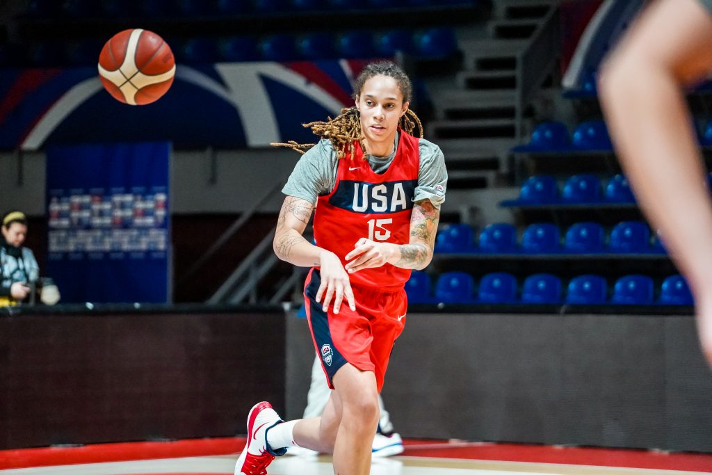- Brittney Griner of the Phoenix Mercury passes the ball.