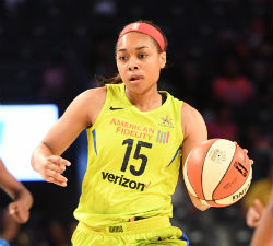 The two teams continued to battle in the second quarter as neither team could pull out to more than a four-point lead. Cambage scored and was fouled on an inbound play with two seconds remaining in the half and converted the old-fashioned three-point play to give the Wings a 55-52 lead at the break. Diggins-Smith scored 13 points in the first half to lead the Wings.