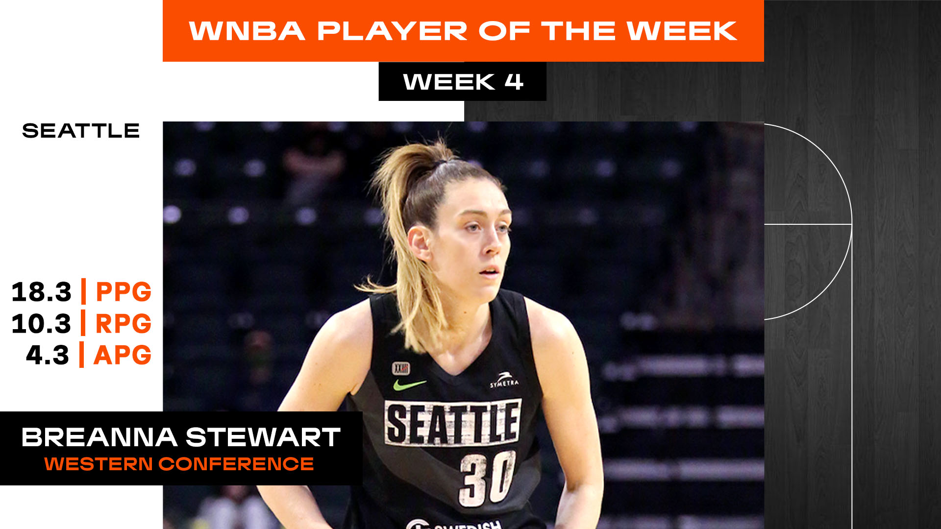Brittney Griner of the Phoenix Mercury (4-0 record during the week) averaged 20.5 ppg, 10.3 rpg and 4.3 apg (Western Conference Player of the Week).