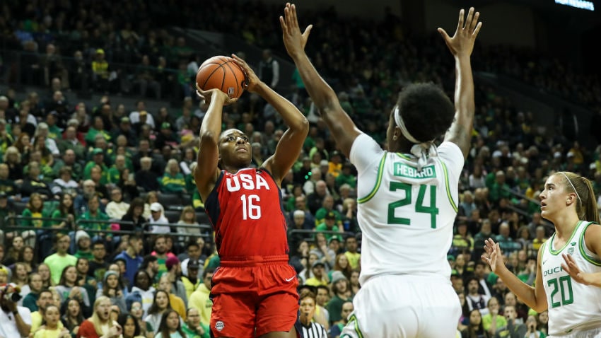 The No. 1 ranked University of Oregon Ducks rallied from 11 down midway in the second quarter to knock off the USA Women’s National Team 93-86.